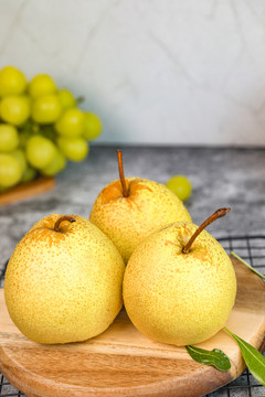 霜降時(shí)節(jié)吃秋梨是個(gè)不錯(cuò)的選擇。梨味甘性涼、微酸,具有清熱生津、潤肺化痰的功效,是防治秋燥的佳果。梨能維持細(xì)胞組織的健康狀態(tài),還能軟化血管。生食梨有清熱解毒、生津潤燥、清心降火作用;煎水或加蜜熬膏,有清熱潤肺、化痰止咳的作用。若與荸薺、蜂蜜、甘蔗等榨汁同服,效果更佳。梨含果酸多,不宜與堿性藥同用,如氨茶堿、小蘇打等。用以止咳化痰者,不宜選擇含糖量太高的甜梨。梨不應(yīng)與螃蟹同吃,以防引起腹瀉。因梨味甘,微酸,性寒,而蟹味咸,性寒,具有微毒。二者皆為冷利之品,同食傷腸胃。吃梨時(shí)喝熱水、食油膩食品會(huì)導(dǎo)致腹瀉。