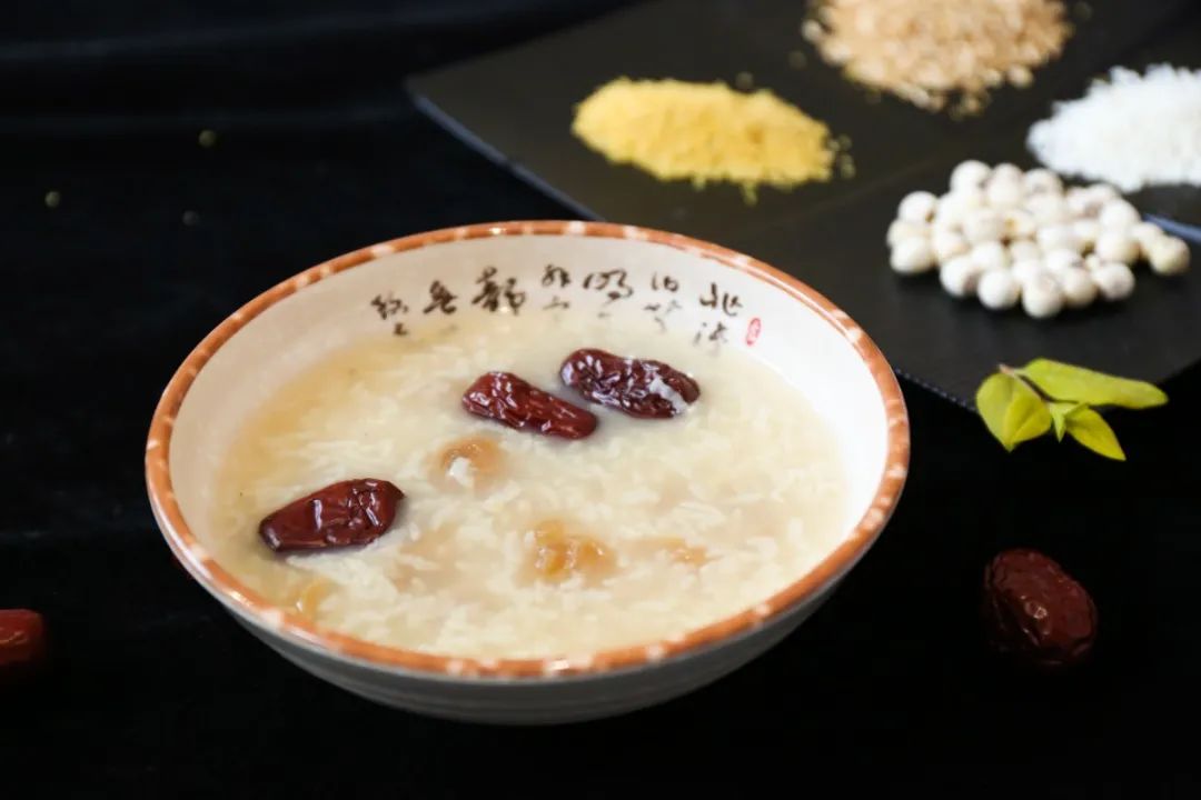 大米30克、小米30克、糯米30克、薏米30克、赤小豆30克、綠豆30克、紅蕓豆50克、蓮子40克、棗20克、桂圓肉30克、花生仁30克、玉米糝50克