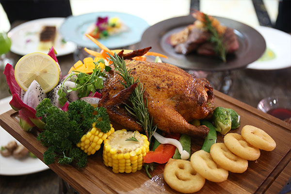 烤雞更是味道正宗。奧爾良風(fēng)味,外焦里嫩,香嫩多汁。烤雞再配上新鮮果蔬,更是清淡不油膩。一只烤雞,可以給一家人帶來一頓豐盛的晚餐了。腌制所用醬料對于烤雞的味道起到了關(guān)鍵性的作用。所以在醬汁調(diào)制和腌制的過程中,同學(xué)們特別用心思。30分鐘過后,一只熱氣騰騰的烤雞出爐。
