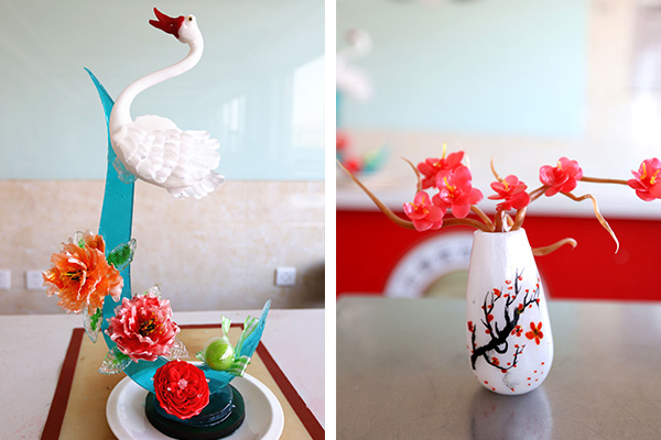 層層疊疊的花瓣簇擁著嬌嫩的花蕊;小巧秀氣的蟠桃成雙成對惹人憐愛;飽滿的紅玫瑰,洋溢浪漫的氣息;剔透輕盈的荷花,綻放出夏日的清爽……這些色彩繽紛,可愛的糖藝作品,來自沈陽新東方技工學校的學子們,見證了同學們的日夜努力與奇思妙想。