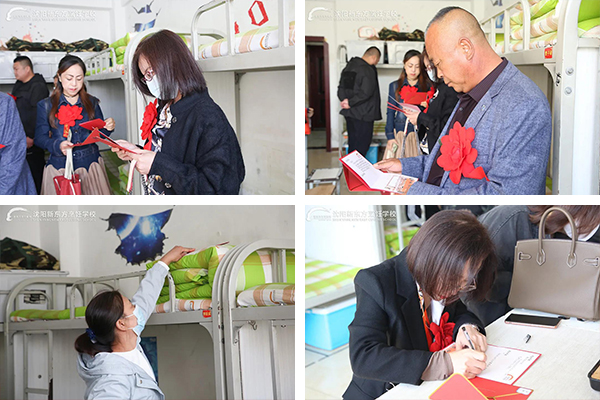 此外,學(xué)校更邀請家長們親自感受孩子們的日常練習(xí)內(nèi)容。同時,學(xué)校安排了老師帶領(lǐng)大家參觀沈陽新東方的校園與學(xué)生的生活寢室,同學(xué)們更在床鋪上留下了對父母的感恩寄語賀卡,家長們看到孩子們的筆跡,每個人都覺得感慨又幸福。