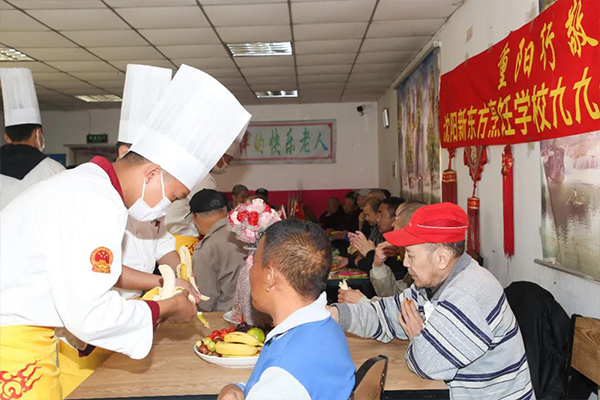 針對此次重陽節(jié)敬老公益活動,沈陽新東方技工學校的師生為老人們帶來了美食和老人們互動談心,更表演了排練已久的歌唱表演節(jié)目,同時多才多藝的老人們也貢獻了精彩的節(jié)目。老人們露出了開心的笑臉,對小廚師們的廚藝和節(jié)目贊口不絕,同學們也感受到了老人的風趣幽默和經(jīng)驗智慧,在敬老院現(xiàn)場一片歡聲笑語。