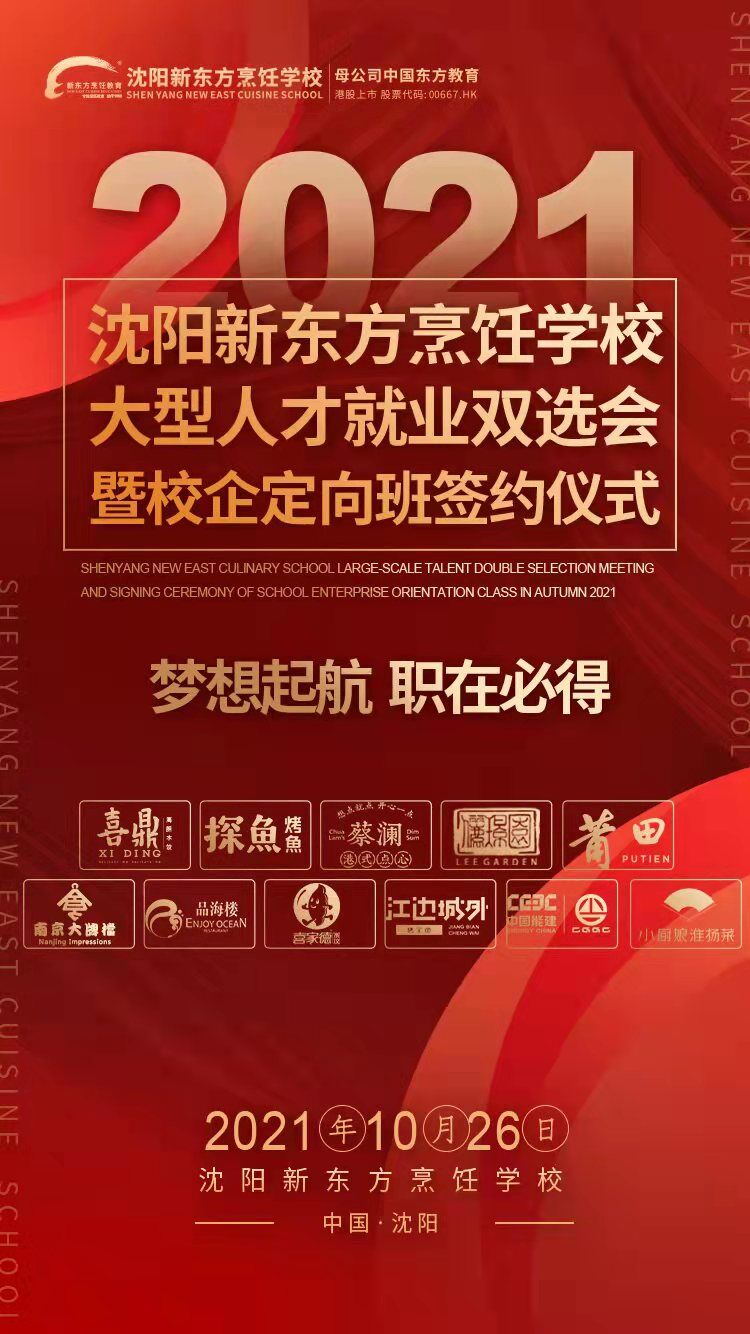 作為就業(yè)型烹飪教育學(xué)校,沈陽新東方技工學(xué)校自成立之日起,一直把學(xué)子的就業(yè)問題放在首位,不斷拓展優(yōu)質(zhì)校企合作企業(yè),每年畢業(yè)季,都會(huì)為學(xué)子開展大型就業(yè)雙選會(huì)。本著公開、平等、擇優(yōu)就業(yè)的原則,層層篩選和把關(guān),召集多家企業(yè),為學(xué)子提供在校選滿意工作的機(jī)會(huì),也為企業(yè)直接輸送烹飪?nèi)瞬拧>驮诿魅眨?021年10月26日,一大波知名餐飲集團(tuán),又要來沈陽新東方“搶人”了!“搶人大戰(zhàn)”即將精彩上演!