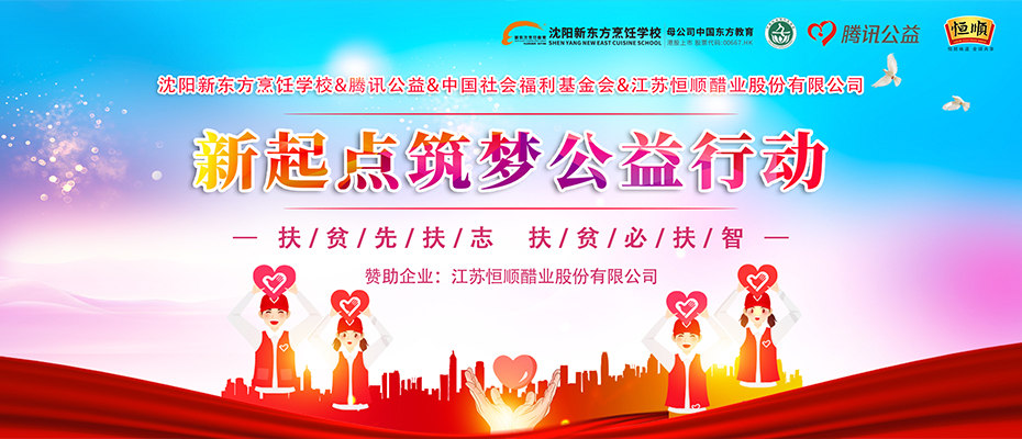 新東方烹飪教育自創(chuàng)建以來,始終滿懷興教報國的宏大抱負(fù),積極投身職業(yè)教育藍(lán)海,踐行職教扶貧,并積極促進(jìn)公益助學(xué)項(xiàng)目的達(dá)成與合作。“新起點(diǎn)·筑夢公益行動”是由中國福利基金會、騰訊公益、新東方烹飪學(xué)校、江蘇恒順醋業(yè)股份有限公司聯(lián)合發(fā)起的職業(yè)教育幫扶公益項(xiàng)目。旨在助力失業(yè)待業(yè)青年、貧困少年實(shí)現(xiàn)夢想,來幫助他們改變命運(yùn),幫扶大家實(shí)現(xiàn)自己的成才夢而大力開展的職業(yè)教育幫扶公益活動。