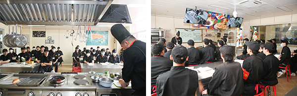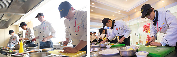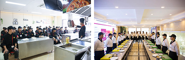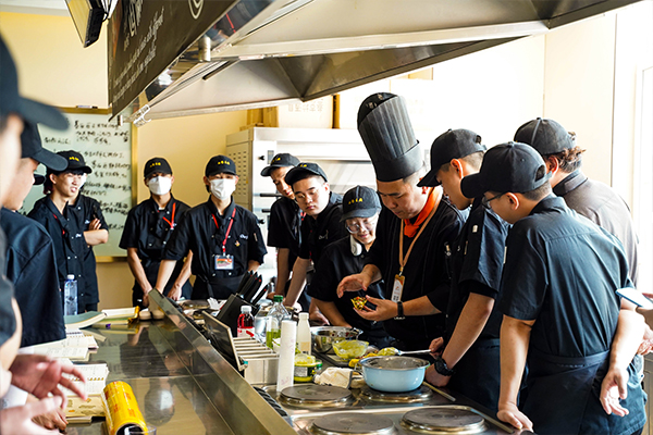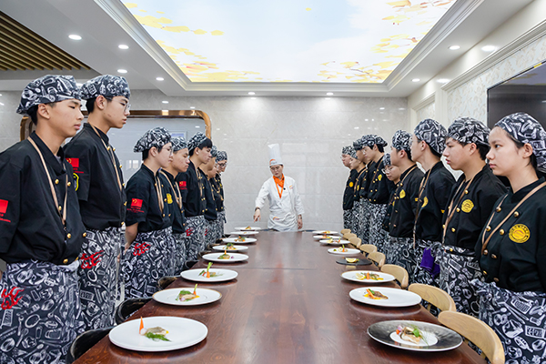 專業(yè)老師示范講解菜品的風味特色、原材料等,同時實操示范菜肴的加工、操作工藝流程、制作技法的重點、難點和注意事項,讓學生真正學會核心技術。