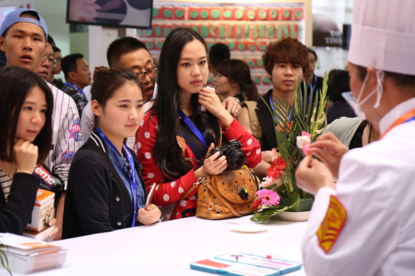 亮相新東方烹飪教育展臺的模特是眾多新東方學(xué)子中的佼佼者,擅長貴族式西點制作的她們擁有出眾的外表,精湛的水準(zhǔn)。從現(xiàn)場制作,到為參會人員提供美食試吃,無一不體現(xiàn)專業(yè)。烘焙時,她們專注,細心,精益求精。為參觀者提供試吃時,細致、熱情,讓品嘗者的擁有最貼心的美食體驗!