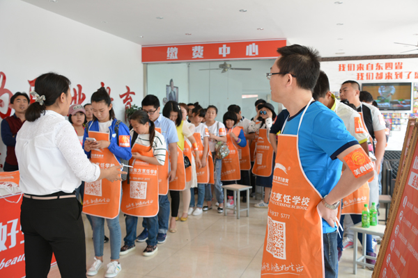 美食體驗(yàn)課在9點(diǎn)準(zhǔn)時(shí)開始,參與者們?cè)缭缇蛠淼搅藢W(xué)校在咨詢中心等候,有的參與者體驗(yàn)課還沒開始就報(bào)名學(xué)習(xí)了。穿上沈陽新東方私家定制的圍裙,他們列隊(duì)走進(jìn)了美食“廚房”。充滿期待,也一定會(huì)有無限驚喜。