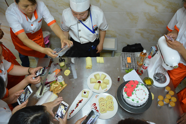 老師制作完成后同學們紛紛拿出手機,拍下了西點作品。