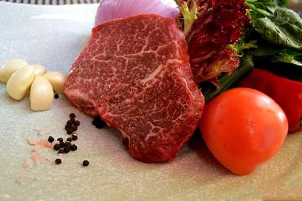 選用從小喝著啤酒、聽著音樂、享受著按摩長大的大連雪龍牛。牛肉外表紋理有如大理石一般,口感柔韌、入口即溶,軟嫩多汁。