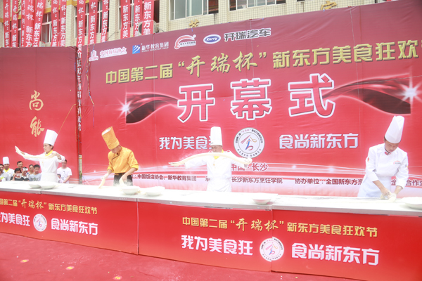 臺上一分鐘,臺下十年功。開幕式上,新東方大師表演的面食絕技將開幕式氛圍推向高潮。內(nèi)蒙古新東方的張成國大師、安徽新東方的馬曉亮大師和山西新東方的王彥芳大師為我們帶來“獨輪車頭頂?shù)断髅?rdquo;“踩高蹺呼啦圈剪刀面”等絕活,一邊腳蹬獨輪車,一邊雙手同時削面,引得現(xiàn)場觀眾拍手叫絕,紛紛拿出手機(jī)拍照,定格這神奇的一刻;寧夏新東方的李海濱大師為我們帶來“龍須拉面”“長壽一根面”等經(jīng)典面食制作的絕技展示。柔軟的面條在各位大師手中仿佛格外聽話,上下打晃,左右打花,轉(zhuǎn)眼之間遠(yuǎn)看宛如瀑布,近看細(xì)如發(fā)絲的龍須拉面已經(jīng)完美的呈現(xiàn)在觀眾面前,現(xiàn)場爆發(fā)出雷鳴般的掌聲,叫好聲此起彼伏。