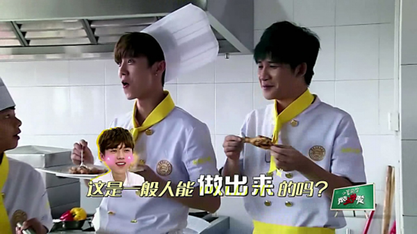 昨晚睡前讓人魂?duì)繅?mèng)繞的火鍋男團(tuán)計(jì)劃,終于在結(jié)束一天的課程之后開(kāi)始實(shí)施了。大家分工合作,鹿晗和大張偉負(fù)責(zé)從創(chuàng)意菜課上“收獲”食材,魏晨和ELLA負(fù)責(zé)搬桌子,薛之謙和張丹峰負(fù)責(zé)洗菜做火鍋,宿舍火鍋大餐就這樣備齊了。只見(jiàn)八個(gè)人的時(shí)候,鹿晗在吃;五個(gè)人的時(shí)候,鹿晗在吃;最后剩下自己,鹿晗還在吃!小鹿同學(xué),給你一鍋底料是不是可以吃到天亮?