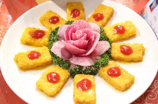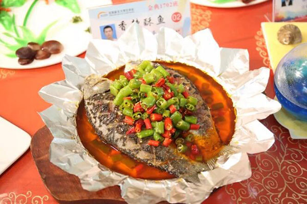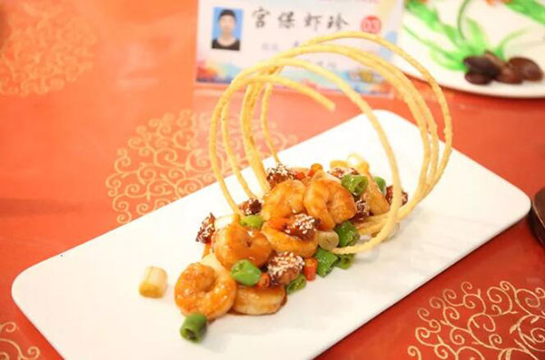 這次的考核內(nèi)容是根據(jù)評委組命題,烹飪指定菜肴。經(jīng)過一個上午緊張忙碌準(zhǔn)備,同學(xué)們各展其藝,紛紛將一盤盤美味佳肴擺放在展示臺上,讓人看了垂?jié)i欲滴。