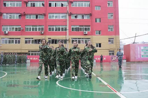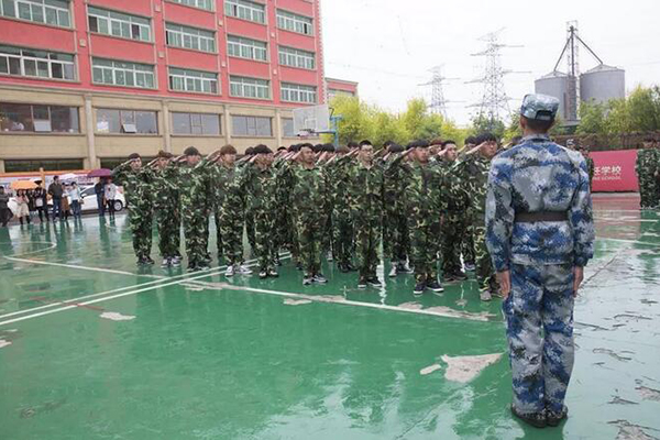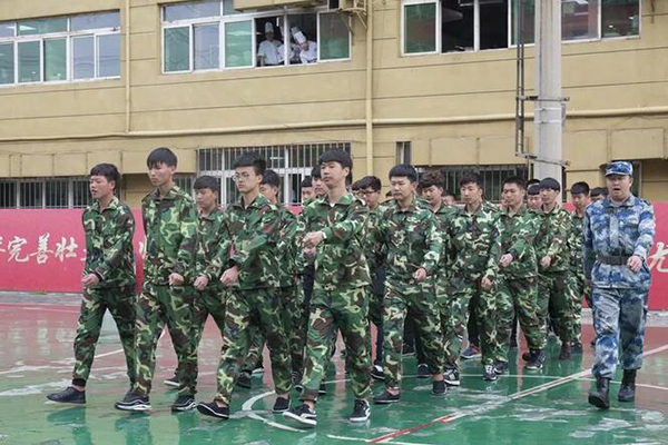 之后家長們觀看孩子的軍訓(xùn)會(huì)操表演