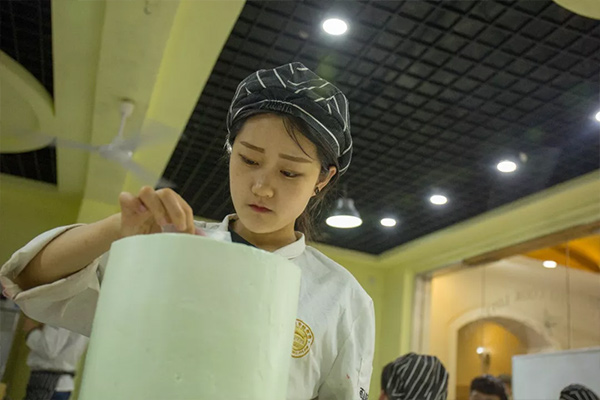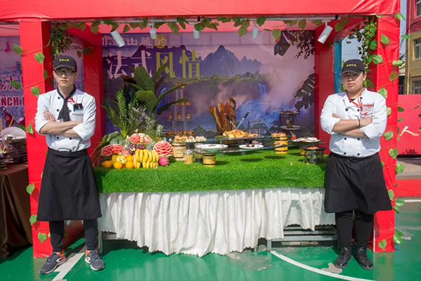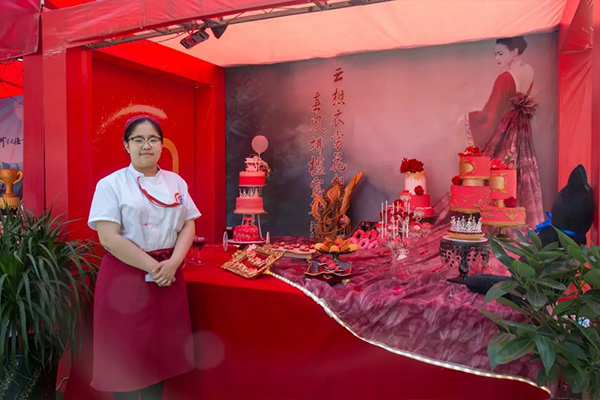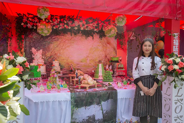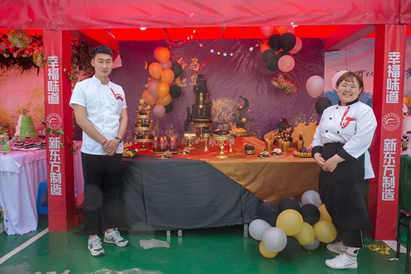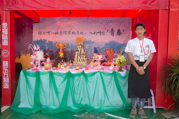 烹飪大賽現(xiàn)場,來自各班的特色展臺(tái)齊聚沈陽新東方,菜品品種目不暇接,讓大家大開眼界。從金雀迎賓宴到浪漫的法國風(fēng)情,再到充斥著濃郁中式婚禮的甜品擺臺(tái),從淋鏡面蛋糕到繁星點(diǎn)綴的翻糖蛋糕……鍋里煮的,油鍋里炸的,手拉的,刀切的,咸甜酸辣,蒸炸煮煎,應(yīng)有盡有。