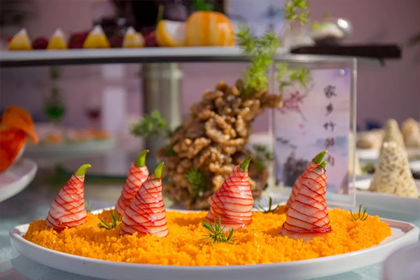 在本次“維益杯”烹飪技能大賽上,中烹專業(yè)班級(jí)得宴席展臺(tái)將中華美食與地域文化交織一起,濃縮成經(jīng)典,展現(xiàn)了一幅幅氣勢恢宏、菜香飄溢的地域美食畫卷,承載出文化的積淀。西點(diǎn)專業(yè)和西餐專業(yè)的班級(jí)則以古典、唯美、浪漫為主。