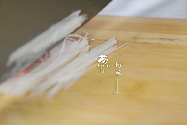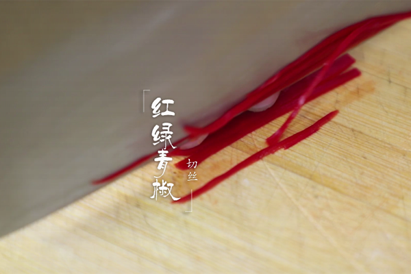 5、之后將切好的蔥姜絲與紅綠椒絲放在上面。