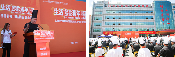 緊接著,由劉敬賢先生、王玉寶先生、吳建新先生、羅永存先生、祁跡先生分別為五個高端精品專業(yè)學(xué)員代表授帽。莊重的授帽儀式讓在場的每一位師生心潮澎湃,這一身廚師衣帽,承載著大家的夢想和師長們的期待,承載著家庭和社會的希望。希望沈陽新東方的學(xué)子努力踐行工匠精神,在傳承中發(fā)展,在發(fā)展中創(chuàng)新,不久的將來人人都能成長為德才兼?zhèn)�、廚技一流的廚界大師。