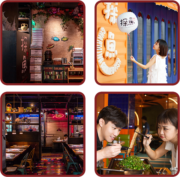 探魚,經(jīng)營烤魚,以原創(chuàng)單品重慶豆花烤魚最為出色。融合了腌、烤、堂燒、涮等多種烹飪技法,其魚鮮嫩糯軟、香濃麻辣。探魚是首家將街邊烤魚搬到購物中心,用咖啡館的逼格做餐廳,用藝術(shù)家的氣質(zhì)賣烤魚,獨(dú)家原創(chuàng)菜品“重慶豆花烤魚”、“鮮青椒烤魚”、“毛血旺烤魚”等,烤魚口味多達(dá)18種,共有烤魚、燒烤、前菜、小吃甜點(diǎn)、自制飲品5條產(chǎn)品線,開創(chuàng)了全新的商業(yè)模式。餐廳數(shù)量遍布中國72個大中型城市,探魚品牌業(yè)務(wù)范圍亦擴(kuò)展到新加坡。全國200余家連鎖餐廳,一年賣出1000萬+條烤魚。探魚每年社交曝光量達(dá)到2.4億,遍布各個網(wǎng)絡(luò)美食平臺。