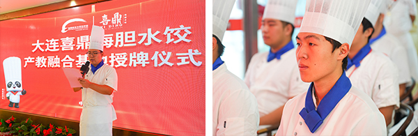 為深入貫徹“校企合作、產(chǎn)教融合、訂單式培養(yǎng)”的人才培養(yǎng)模式,推動沈陽新東方技工學校形成多元辦學格局,提升教學質量,增加就業(yè)競爭力,樹立職業(yè)目標,通過與企業(yè)合作,可以將實際的職業(yè)教育技能要求融入到教學中,使學生能夠更好的掌握實用技能和知識。沈陽新東方技工學校圍繞新時代產(chǎn)業(yè)建設改革工作要求,大力發(fā)展職業(yè)教育,進一步提升校企產(chǎn)教融合深度合作,共同探索校企合作新模式。2023年8月29日,沈陽新東方技工學校與大連喜鼎舉行產(chǎn)教融合基地授牌儀式,持續(xù)落實校企人才培養(yǎng)戰(zhàn)略,攜手共謀“協(xié)同育人”新篇章。此次出席授牌儀式的領導有:喜鼎海膽水餃沈陽店總廚師長于雙池、沈陽新東方技工學校產(chǎn)教融合負責人薛勝強。