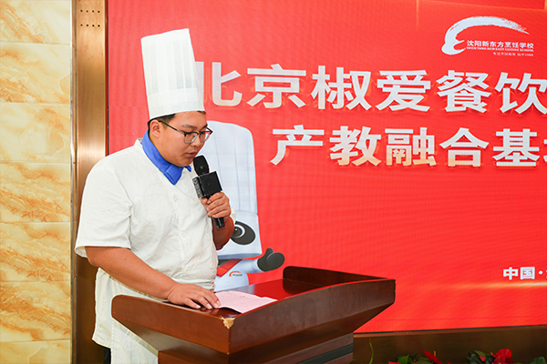 沈陽(yáng)新東方技工學(xué)校的教師代表發(fā)言,在烹飪行業(yè)日益競(jìng)爭(zhēng)激烈的今天,合作已經(jīng)成為了推動(dòng)學(xué)校發(fā)展和提升教育質(zhì)量的關(guān)鍵。沈陽(yáng)新東方技工學(xué)校作為業(yè)界的翹楚,以其豐富的教學(xué)經(jīng)驗(yàn)和先進(jìn)的教學(xué)理念贏得了廣泛的贊譽(yù)。而北京椒愛餐飲管理有限公司作為一家知名的連鎖餐飲企業(yè),以其獨(dú)特的品牌魅力和優(yōu)質(zhì)的產(chǎn)品獲得了眾多消費(fèi)者的喜愛。兩者的合作將會(huì)為學(xué)生們提供更多實(shí)踐機(jī)會(huì),拓寬他們的職業(yè)道路,為行業(yè)的發(fā)展帶來更多的創(chuàng)新和機(jī)遇。我們期待通過合作,能夠進(jìn)一步提升學(xué)校的教學(xué)質(zhì)量和專業(yè)水平,培養(yǎng)更多優(yōu)秀的烹飪?nèi)瞬�;能夠�(yàn)閷W(xué)生提供更多實(shí)踐機(jī)會(huì)和實(shí)習(xí)機(jī)會(huì),為行業(yè)的發(fā)展做出更大的貢獻(xiàn);能夠不斷拓展學(xué)校的合作網(wǎng)絡(luò)和資源,為學(xué)生打開更廣闊的職業(yè)發(fā)展渠道。希望同學(xué)們能夠珍惜這次合作機(jī)會(huì),充分利用好這個(gè)平臺(tái),也希望同學(xué)們能夠在學(xué)習(xí)中保持謙遜與勤奮,樹立正確的人生觀和價(jià)值觀,為行業(yè)的發(fā)展做出積極的貢獻(xiàn)。