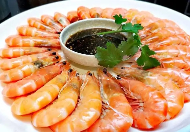 第五步:用一個(gè)好看的盤子,擺個(gè)盤,這樣一道白灼蝦就做好了。