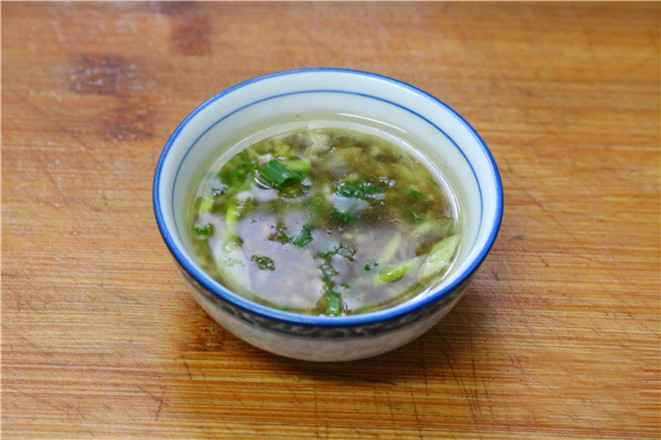 第四步:接下來,最后再來調(diào)個(gè)醬料,碟子中加入蒜泥、2勺香醋、1勺生抽、1勺白砂糖,攪拌充分混合入味。