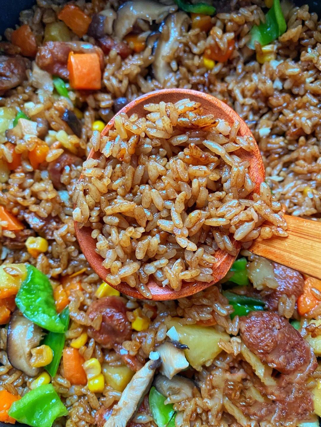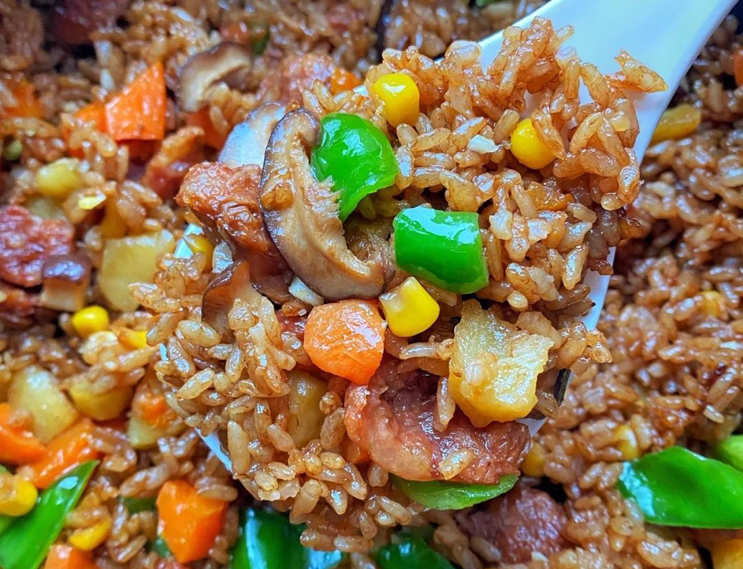主材:大米、臘腸、土豆、香菇、胡蘿卜、青椒、蒜末