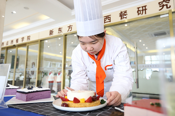 當(dāng)我們問到為什么會(huì)選擇沈陽(yáng)新東方的西點(diǎn)專業(yè)時(shí),樊子?jì)垢嬖V我們,開始是因?yàn)樽约罕旧砭秃芟矚g在家做西點(diǎn),所以選擇了西點(diǎn)行業(yè)。然后經(jīng)過篩選,她發(fā)現(xiàn)沈陽(yáng)新東方不僅有便捷、舒適的環(huán)境,而且教學(xué)環(huán)境也很優(yōu)越,能夠保證教學(xué)質(zhì)量和生活質(zhì)量,最后,她也是因?yàn)榉浅?粗匚鼽c(diǎn)行業(yè)的未來發(fā)展與創(chuàng)就業(yè)前景,而沈陽(yáng)新東方在創(chuàng)就業(yè)這方面的政策,讓她很心動(dòng),所以選擇了沈陽(yáng)新東方。