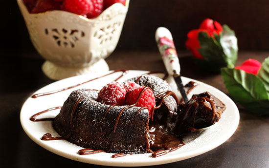 7、烤箱預(yù)熱上火210度,下火180度15分鐘。放入烤箱烤15分鐘烤好倒扣脫模,趁熱食用。也可以冷凍后取出微波加熱20秒左右吃,一樣有熔巖巧克力的效果。