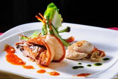 香煎帶子伴牛油扒大蝦
